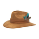Sombrero 100% hecho a mano de gamuza explorer con tiras de piel y cinturón de calaveras color bronce.