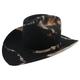 Este sombrero de lana plana hecho artesanalmente inspirado en el corazón del mundo maya, esta decorado con una toquilla de piel, un habano, cuarzo blanco, pluma unica, frasco y piedra verde.