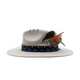 Dejate mover y danzar en la divina inocencia con este sombrero artesanal de gamuza plana con cuerda de algodón, manojo de plumas, costuras de hilo encerado y cuarzo único.