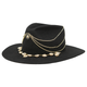 Sombrero 100% hecho a mano de gamuza con tiras y toquillas de piel, con aplicación de plumas de ganso y coquen.